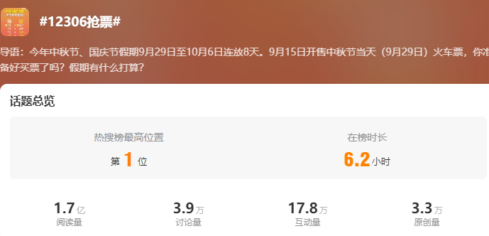 9月14日,#12306抢票#登上微博热搜第一,不少网友在评论区称抢票难、票少、秒光,甚至候补还得排队。