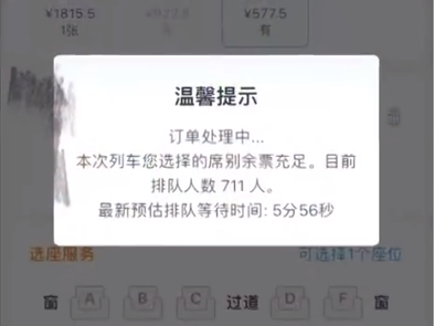 抢购过程中,还有网友吐槽,“到底谁在和我抢票”:系统显示余票充足,但是仍需排队购买,“前方排队711人”“排队108分钟”;还有网友质疑,第三方软件抢票是不是占了普通用户的“坑位”。