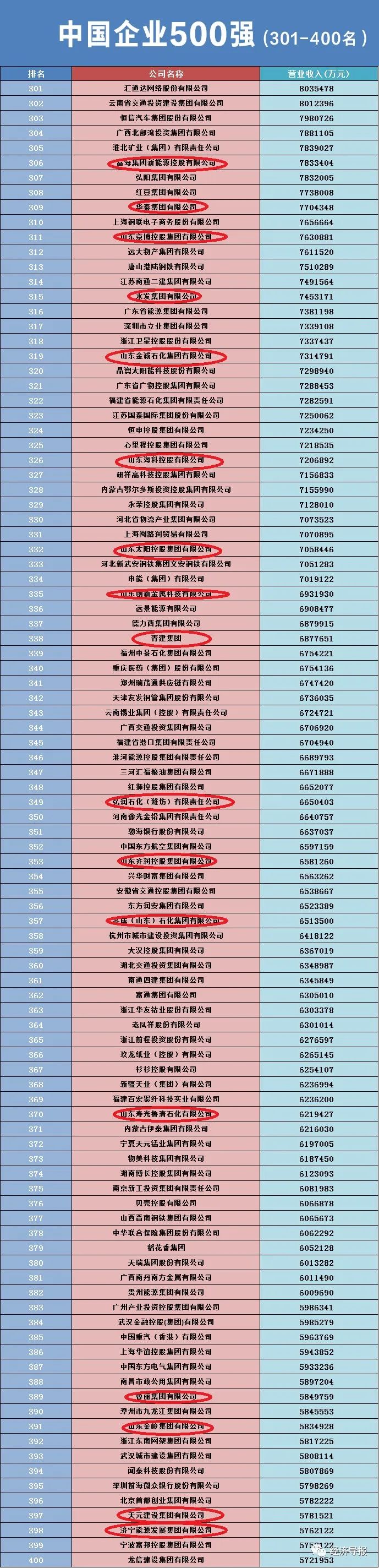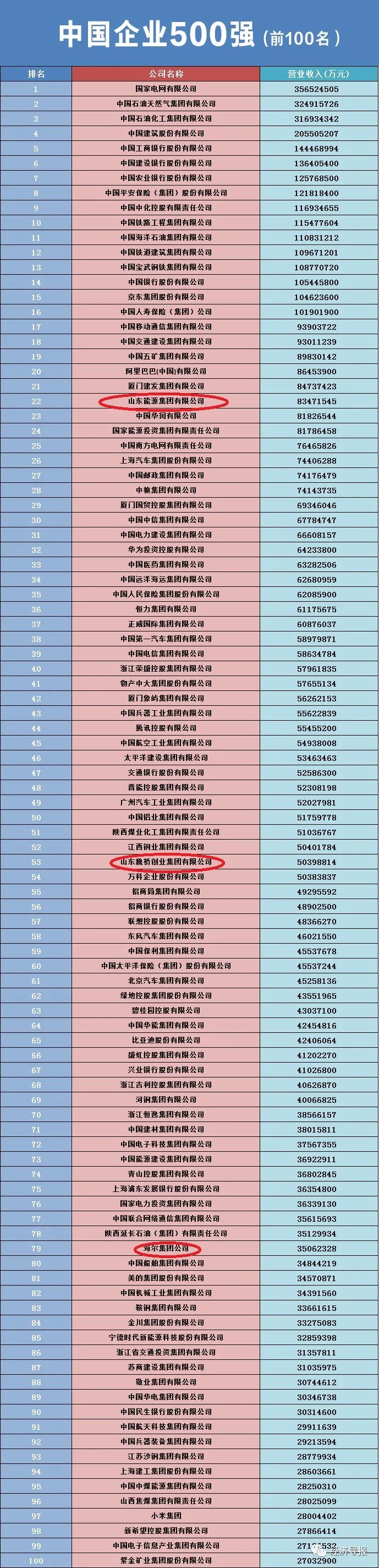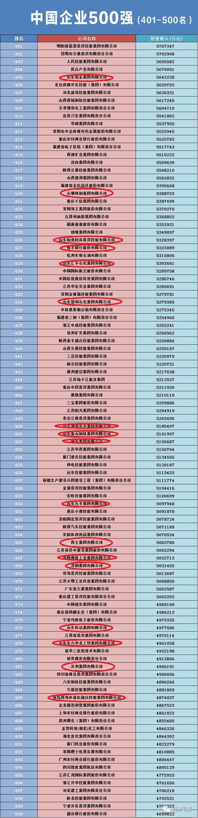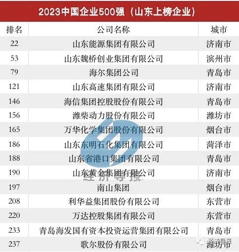 52家山东企业入围2023中国500强企业,17家营收超千亿!
