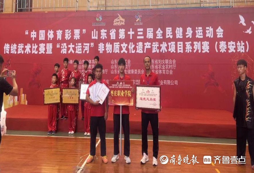 9月8日至10日,山东省第十三届全民健身运动会传统武术比赛暨“沿大运河”非物质文化遗产武术项目系列赛(泰安站)在泰山学院落下帷幕。枣庄职业学院师生荣获一等奖三项,二等奖三项。