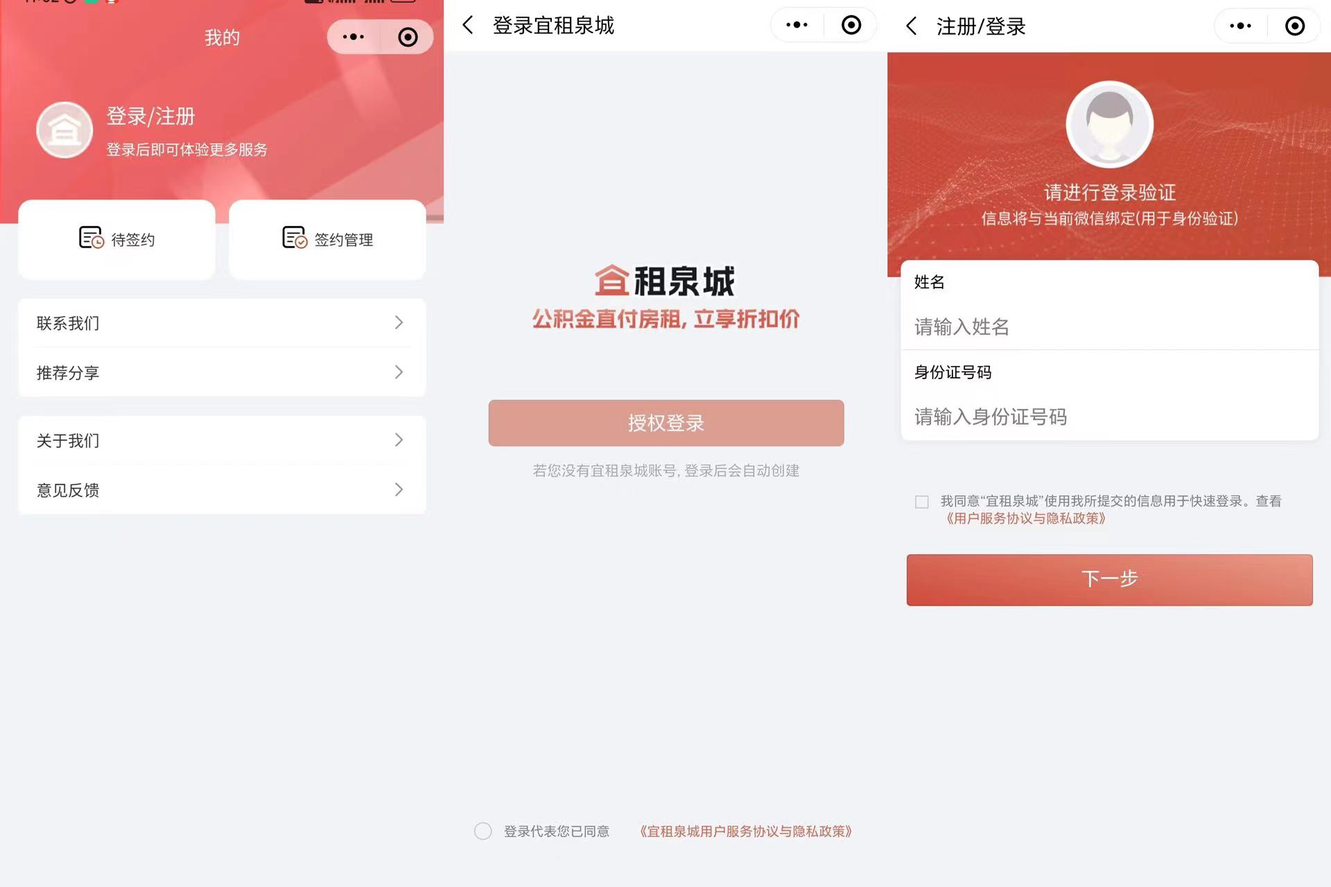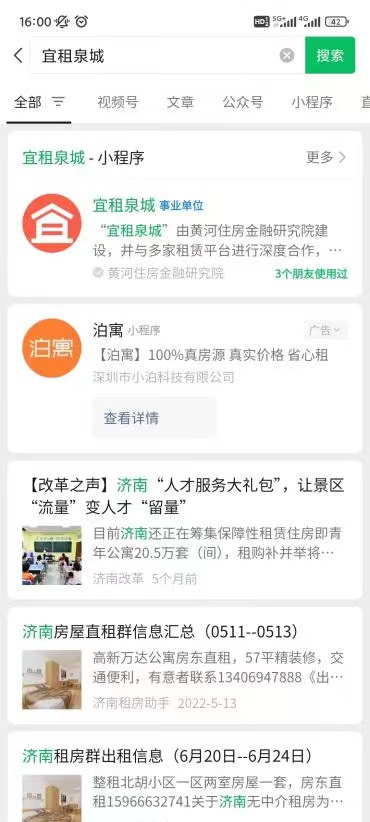(1)微信搜索“宜租泉城”小程序并注册登录。