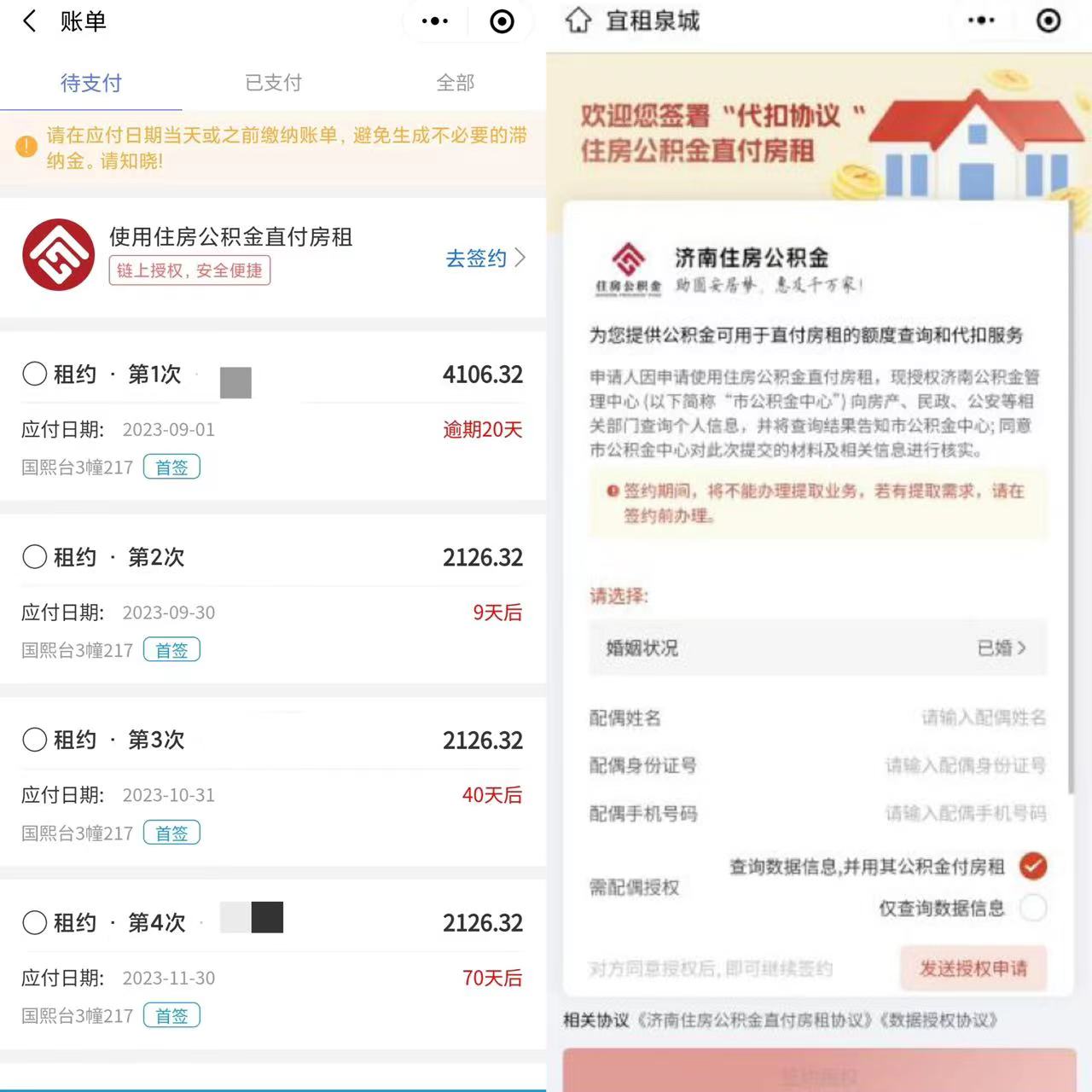 具体操作是缴存人登录“宜租泉城”线上选房,与租赁机构签署租赁合同后,在账单页面可以选择“公积金直付房租”签约授权;签约成功后,在支付每期账单时,系统会提示本期可使用公积金支付房租的金额,点击支付完成操作。