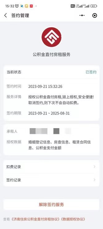 如果想取消公积金直付房租签约授权,可登录“宜租泉城”小程序,在“我的-签约管理”中取消授权。