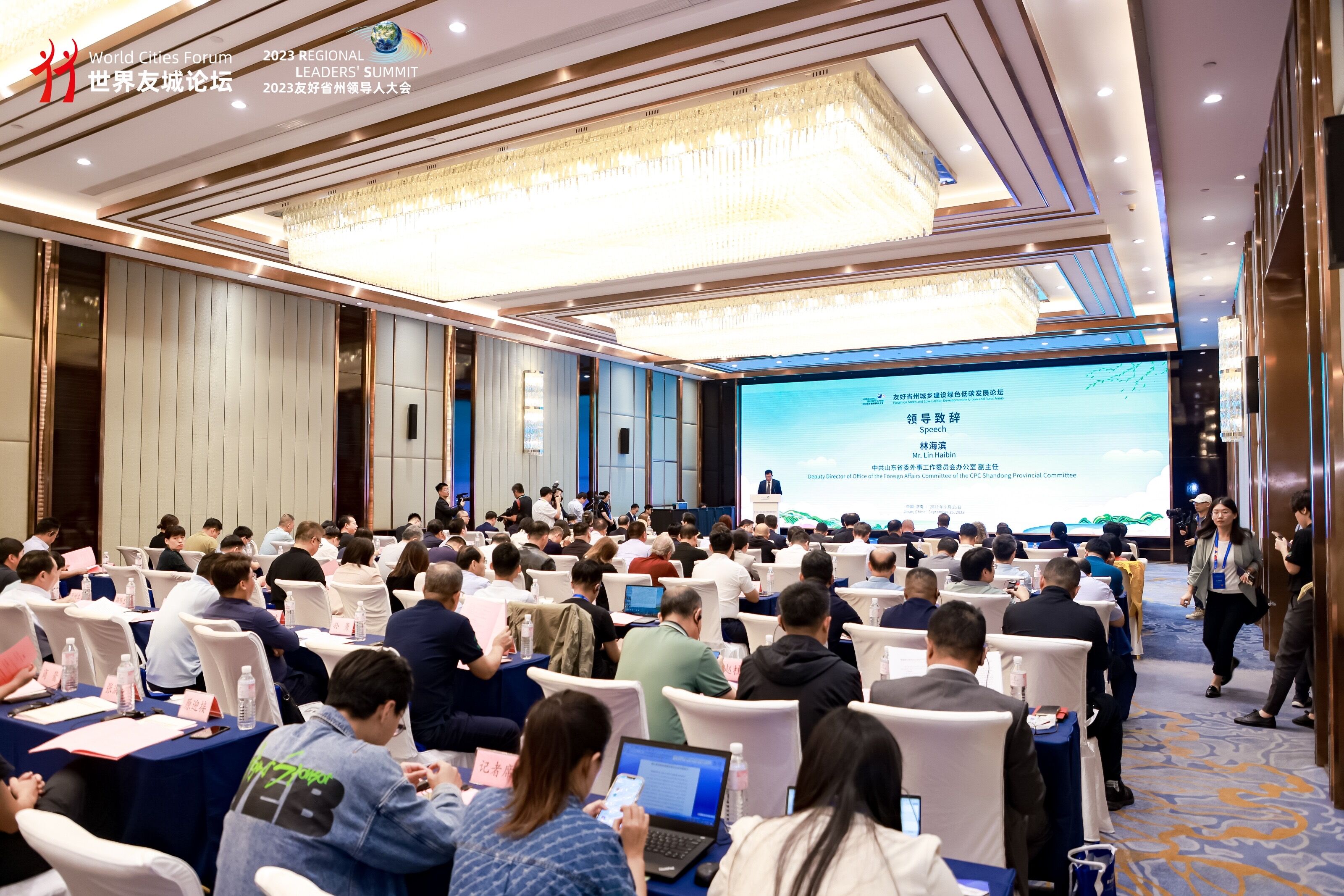 省委外办副主任林海滨在致辞中向各友好省州介绍了山东经济社会发展最新情况。他表示,当前,加快推动绿色低碳发展成为国际社会普遍共识,各友好省州在产业结构转型、绿色能源开发、资源集约利用和生态环境治理等绿色发展方面,也已逐步探索形成了一批成功经验和运行模式。作为2023世界友城论坛暨友好省州领导人大会的东道主,山东十分珍视此次机会,愿为各友好省州搭建一个以绿色为底色的友好合作平台,推动各省州持续推进城乡建设绿色低碳发展经验交流和务实合作,以更好应对各省州在能源、环境、气候等领域面临的挑战。