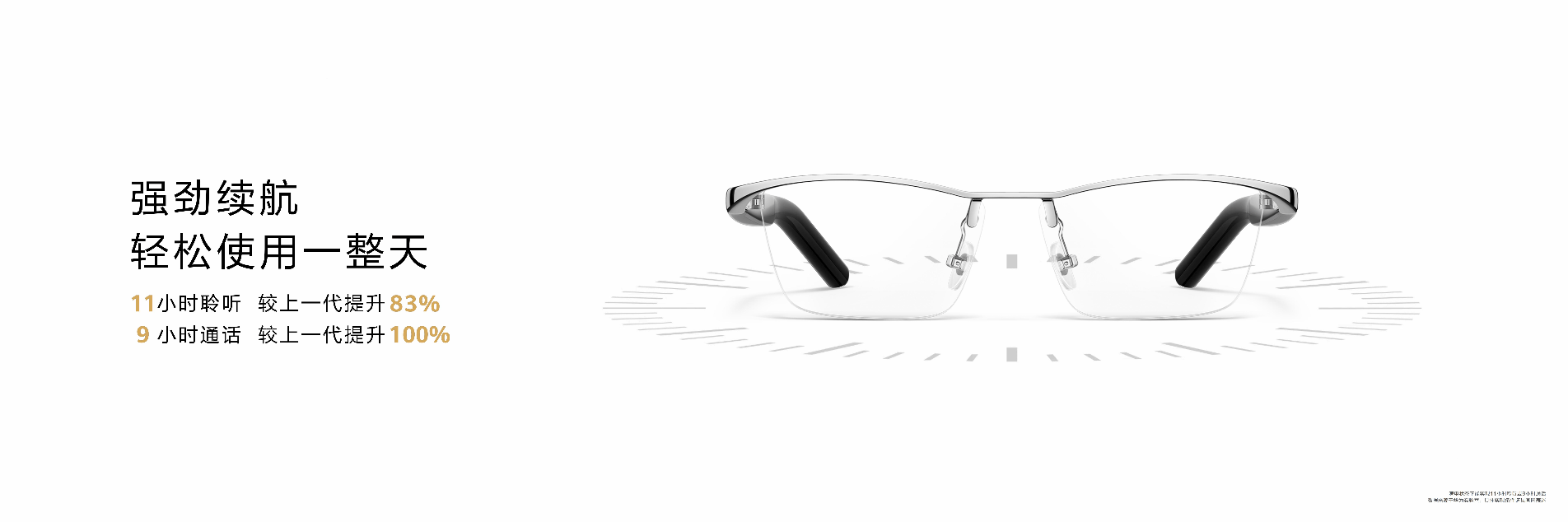 此外,华为智能眼镜 2的续航时长大大加强,聆听时间长达11小时,较上一代提升5小时,通话时长为9小时,较上一代直接翻倍,基本可以满足一天的使用。如此高的实用性,使华为智能眼镜 2更“接地气”,更适合大众使用,而非只供部分极客玩耍的“奢侈品”。