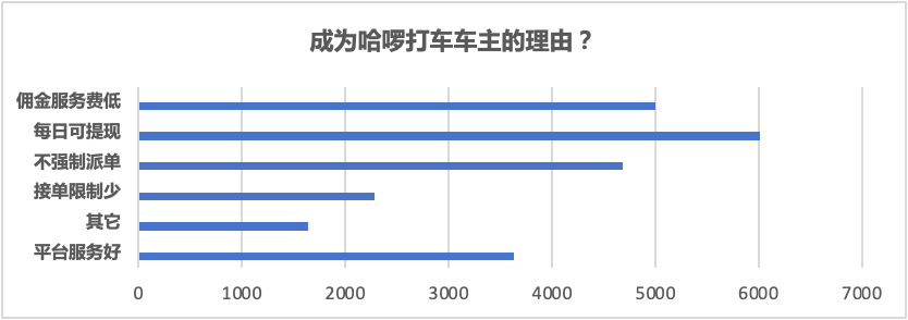 在和收入相关的指标中,86%的司机对哈啰打车当天提现的功能有强烈的感受并点赞;另外有约72%的司机对于哈啰打车低佣金和低服务费感受较强。