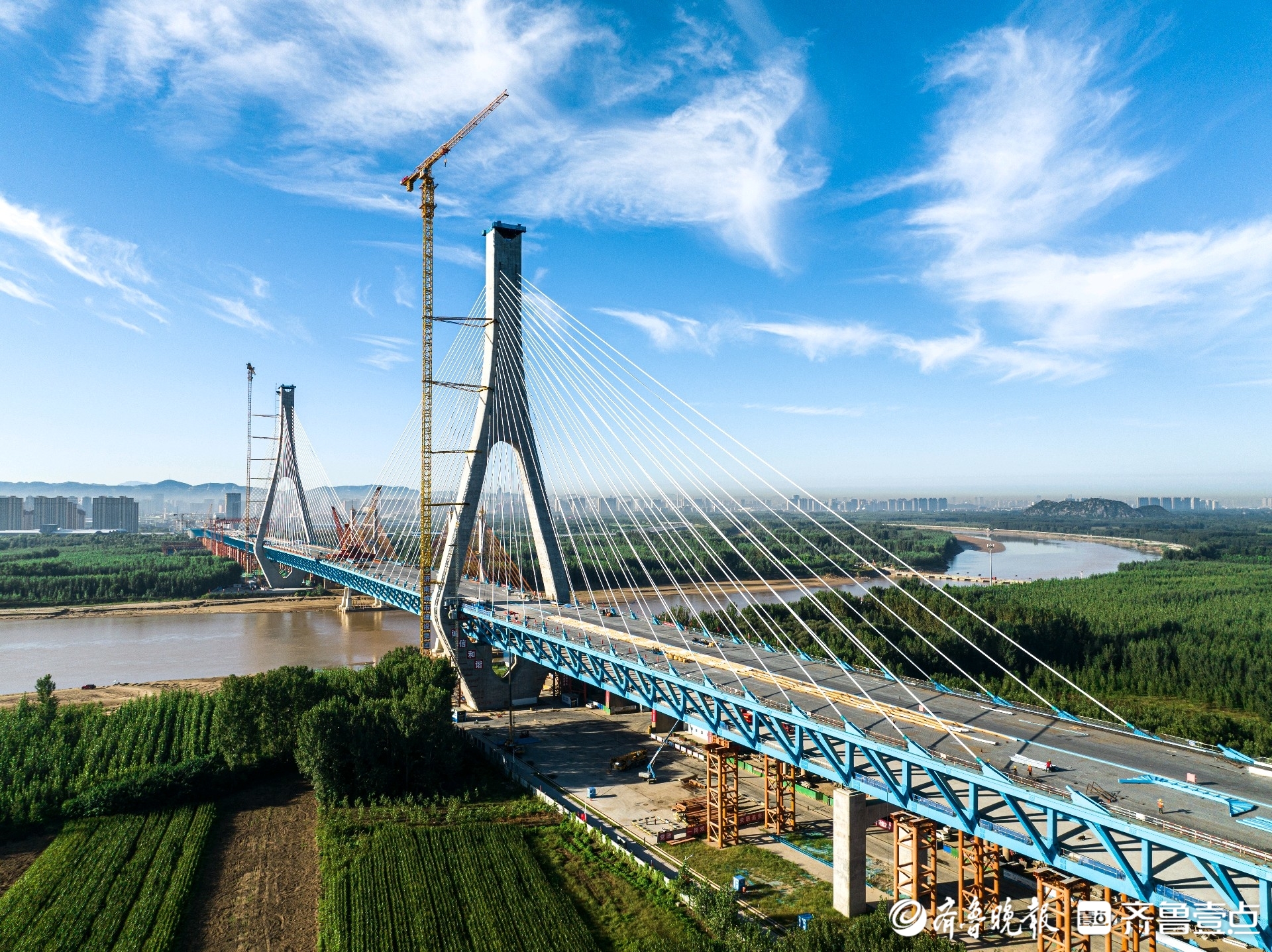 济南黄河大桥新桥“牵手”黄河中线,主桥合龙