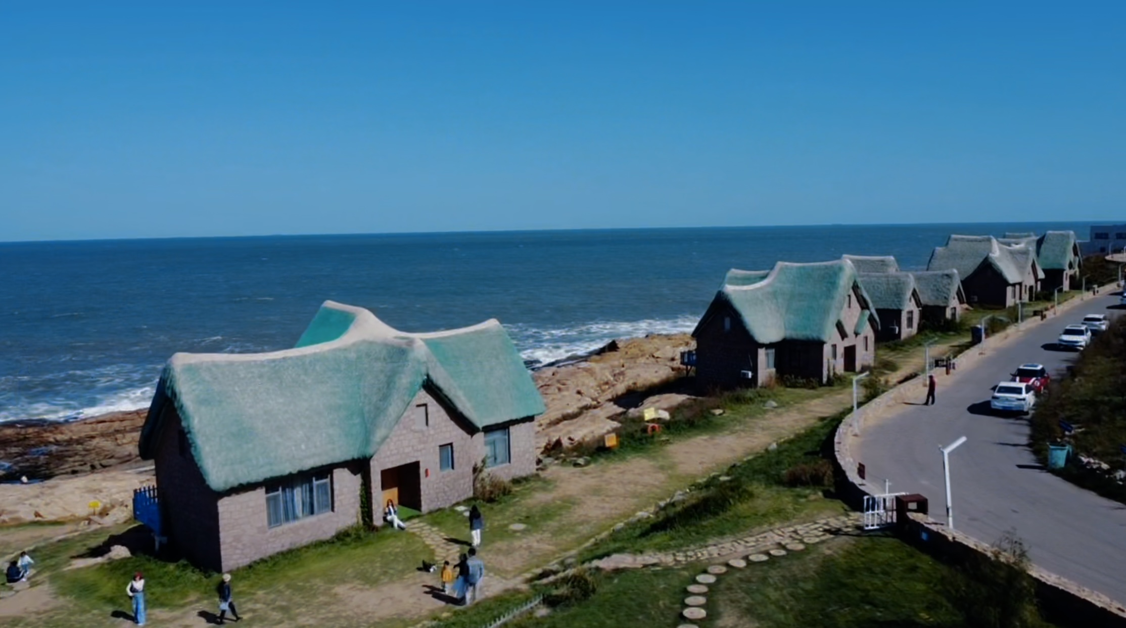 在布鲁威斯号沉船不远处的金石湾艺术园区,有一排很有岁月感的海草屋,背后便是蔚蓝晴空与湛蓝大海,像是进入到宫崎骏笔下的童话世界,非常出片,吸引越来越多的游客相约而至。