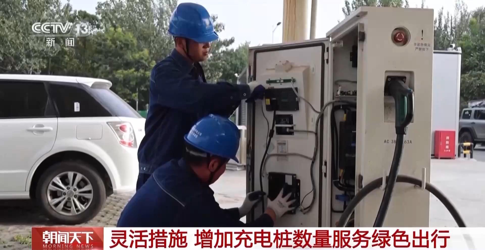 在连霍高速渭南西服务区,国庆期间,这里的充电桩运维人员24小时在岗,对充电桩设备各部位的机械结构、线路接头等进行检查,及时排除故障隐患,保证新能源汽车充电时的用电安全。