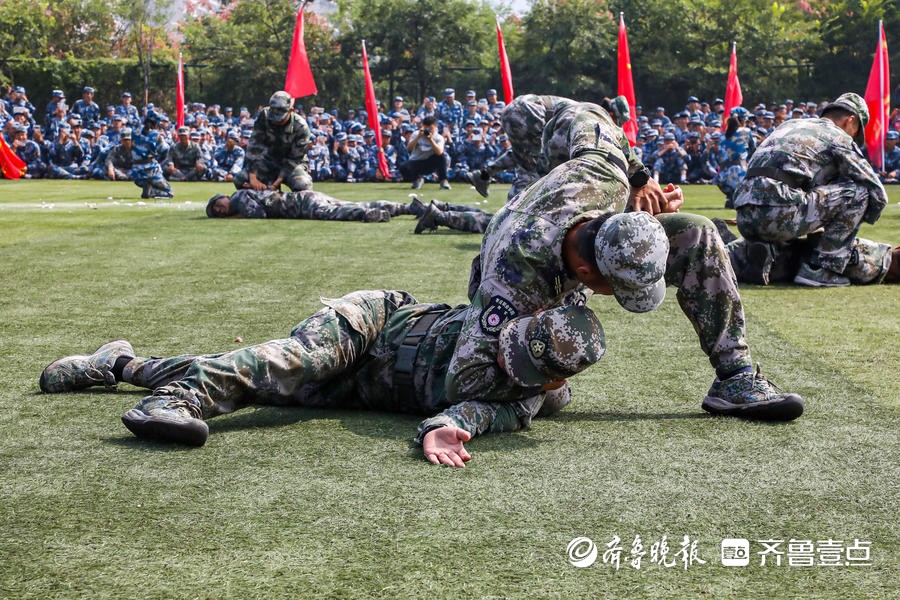 近年来,学院积极探索军训育人新模式,守正创新开展队列基础、战术动作、格斗基础、军事体育和卫生与救护等多科目学训,不断增强学生国防观念和国家安全意识,让军训成为学生们的一堂动起来的“思政课”。