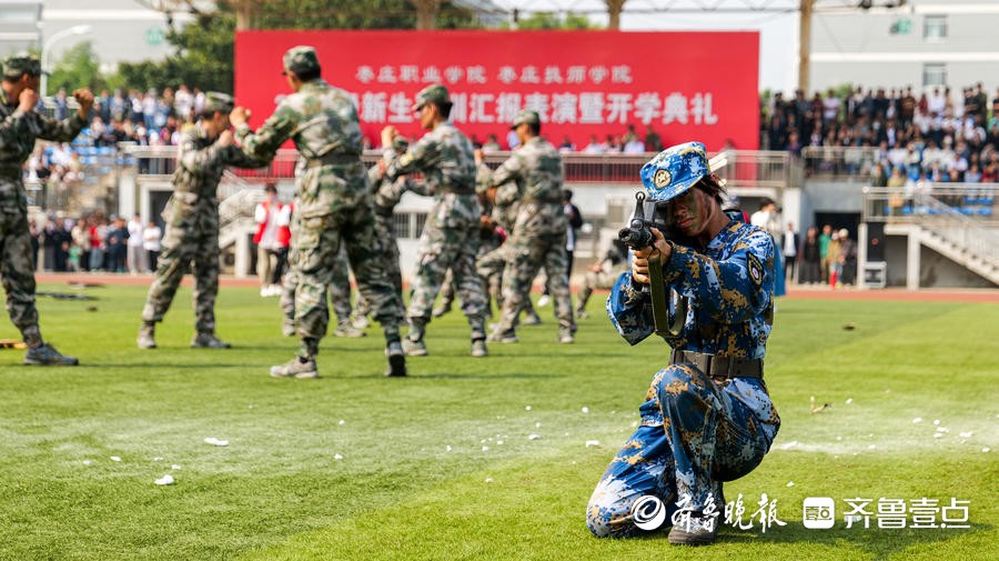枣庄职业学院、枣庄技师学院举行2023级新生军训汇报表演