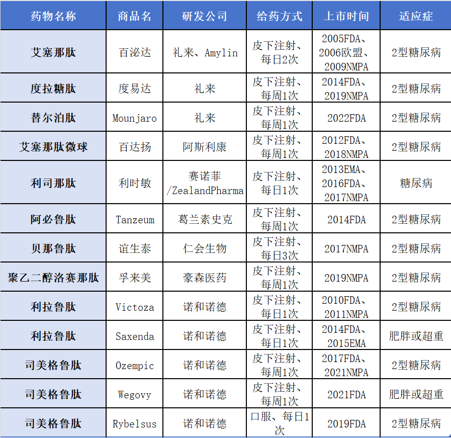 已获批上市的GLP-1RA。图表内容由澎湃科技据公开资料整理