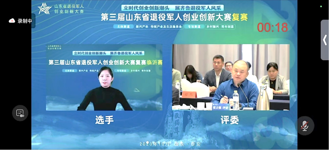 本次创业创新大赛复赛采取“线上项目展示+线下专家评审”的方式进行,主赛场设置在泰安市,同步于济南等15市设置分赛场,邀请5位行业专家按赛道对参赛项目“5+3+1”(即每个项目5分钟连线路演、3分钟专家提问、1分钟专家打分)依次进行综合评分。