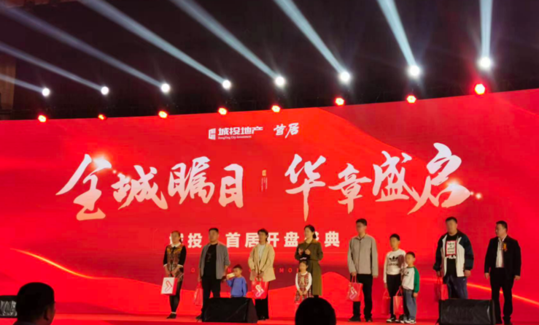 18点58分,城投·首居开盘盛典在炫酷绚丽的灯光秀和恢弘大气的舞台表演中正式拉开帷幕,活动现场人潮涌动、气氛热烈,有关行业主管部门领导和市城建集团领导共同启动城投·首居开盘盛典,市城建集团、中铁一局集团、城投地产公司领导分别致辞。