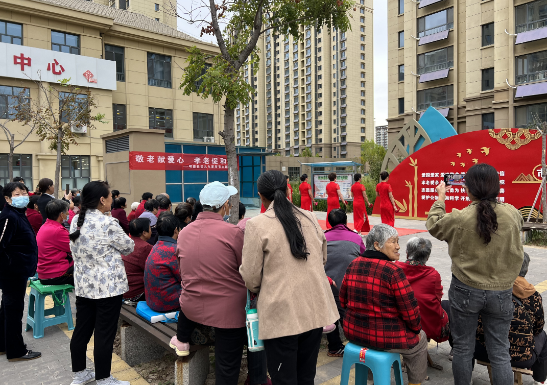 喜迎欢度重阳节,文艺汇演筑同心。丰富辖区内老年人的精神文化生活,演出在欢快的歌曲《欢聚一堂》中拉开了帷幕,歌曲《山坡坡》《最美的歌唱给妈妈》《老百姓的好心情》、豫剧《张大娘淘完了米》、手韵舞《花好月圆》、健身舞等精彩节目陆续上演,一首首优美动听的歌曲,一段段沁人心脾的舞蹈,引来台下观众掌声不断。活动现场老人们更是兴致高涨,有说有笑,大家其乐融融!
