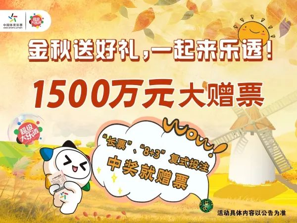 金秋送好礼,一起来乐透!山东专属超级大乐透1500万元大赠票正在火热进行中,大乐透“票”“8+3”复式投注可参与,中奖就赠票。