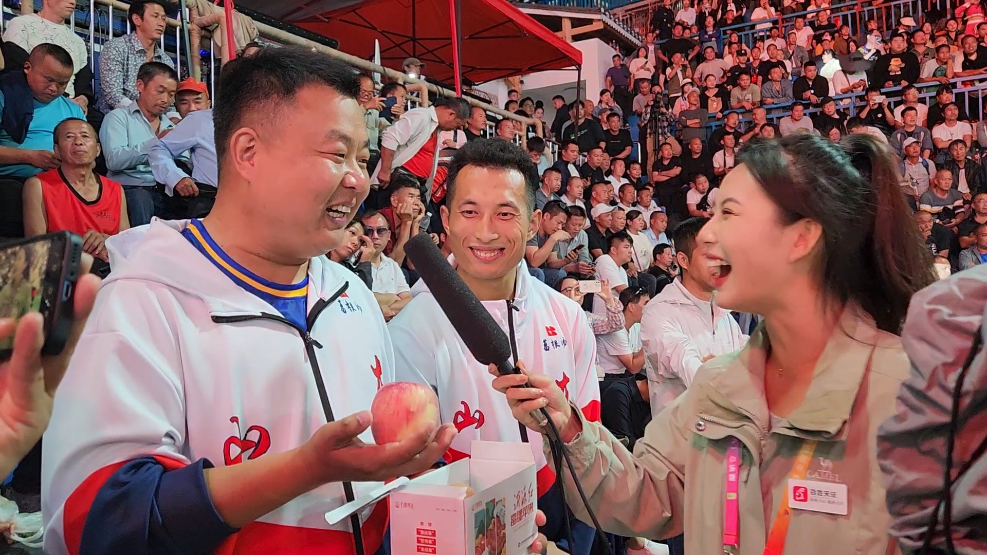 据了解,与队伍一起进入全国视野的不仅有厚道沂源人,更有“沂源红”苹果。比赛现场,随处可见沂源“天团”宣传队力推“沂源红”。球员队服的logo、与对手互换的伴手礼、啦啦队的加油牌……曾经的“奥运果”“全运果”“世博果”如今又走上了村BA的大舞台,并以其色泽鲜艳、皮薄多汁、风味醇厚、脆甜可口的特点,再次获得现场观众的“芳心”。“淄博苹果‘沂源红’,嘎嘣脆!”现场一位美丽的苗族姑娘品尝了沂源苹果后说。