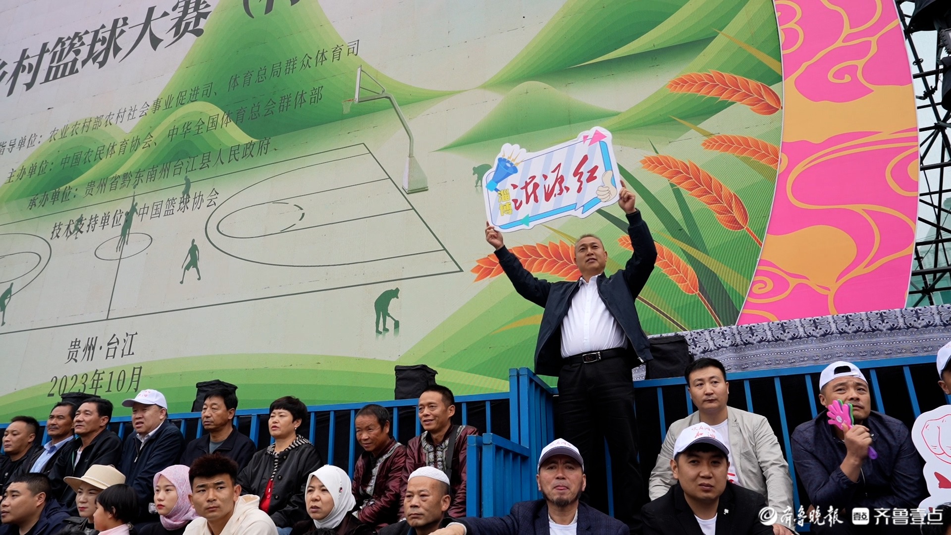 而看台上,“沂源红”啦啦队格外显眼,这支啦啦队被网友们亲切地称为“宇宙最强啦啦队”。悦庄镇党委书记任玉坤告诉记者,山东驻贵州的企业代表、还有从老家赶过来的老乡,共同组成亲友团给悦庄队助威。他们喊着:“好客山东,烟火淄博,‘悦’战越勇”。任玉坤表示,“我们还带来了沂源苹果,希望沂源红给村‘BA’增加一抹红。”