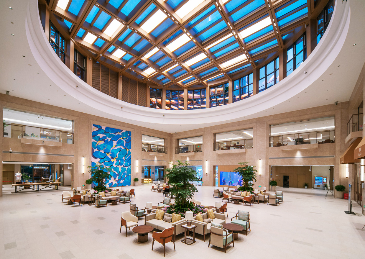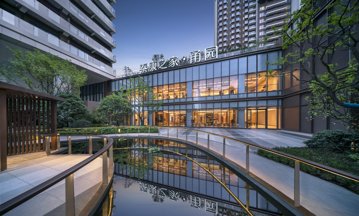 泰康之家·甬园2023年5月21日正式开业运营,这不仅是泰康在全国投入运营的第14家持续照护医养社区,也是第一家位于城市CBD核心区的CCRC养老社区。项目总投资约21.6亿元,地上建筑面积约11.4 万平米,可提供约1300个养老单元,