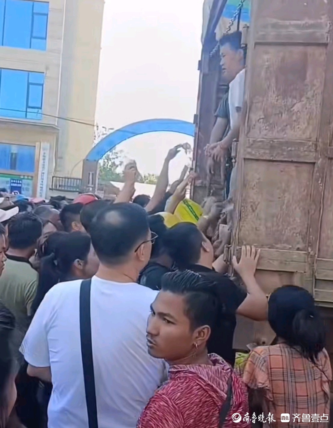 但是,街上的店铺并没有全部关闭,有些小店、农贸市场还在开着。迫于生活,不少人还坚持着摆摊卖点小菜。阿杰的视频显示,缅甸杨龙寨口岸边,有一幢烂尾楼,地上堆积着建筑垃圾,墙壁也十分斑驳,如今住满了人,都是来躲避战乱的,他们觉得,靠近中国边境的地方是最安全的。楼下面还有很多卖小吃的市民,“没办法,大家得讨生活。”