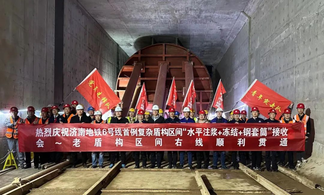 近日,伴随着阵阵轰鸣声和现场参建人员的欢呼声,济南轨道交通6号线会展中心站至老屯站区间右线盾构机顺利通过冷冻加固地层,安全进入保压钢套筒中,标志着6号线这一最长区间顺利贯通。同时,这也是济南轨道交通首次采用“水平加固+冷冻法+钢套筒”的“三保险”措施实现盾构接收。