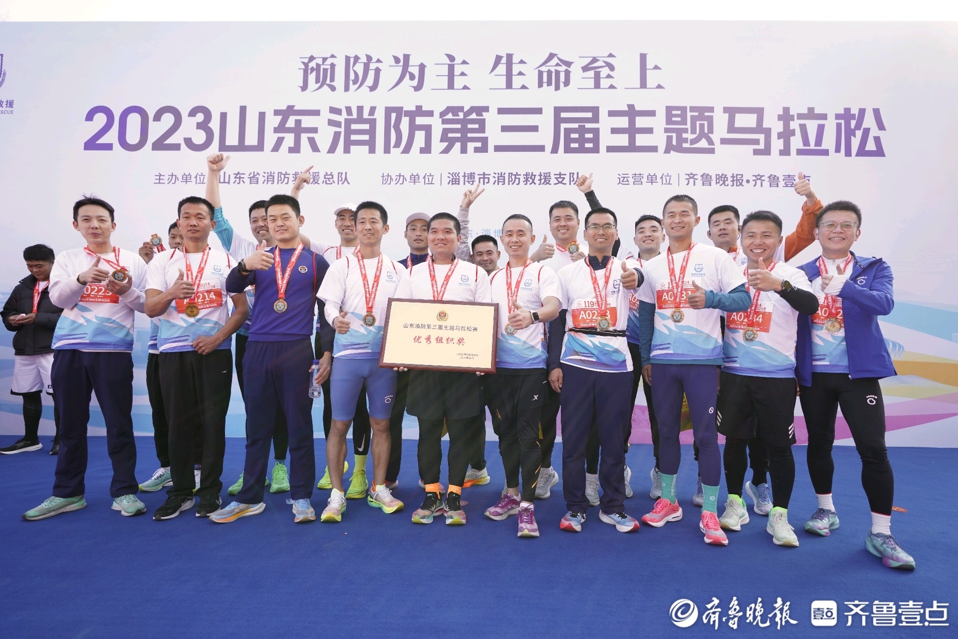 11月19日,“预防为主 生命至上”2023山东消防主题马拉松在淄博文昌湖鸣枪起跑!比赛结束后,对参加此次赛事的男女子半程马拉松的前三名以及优秀组织团体进行了颁奖。