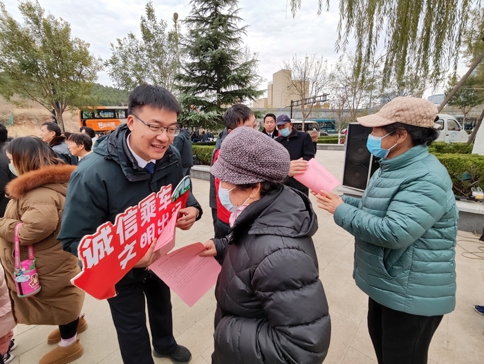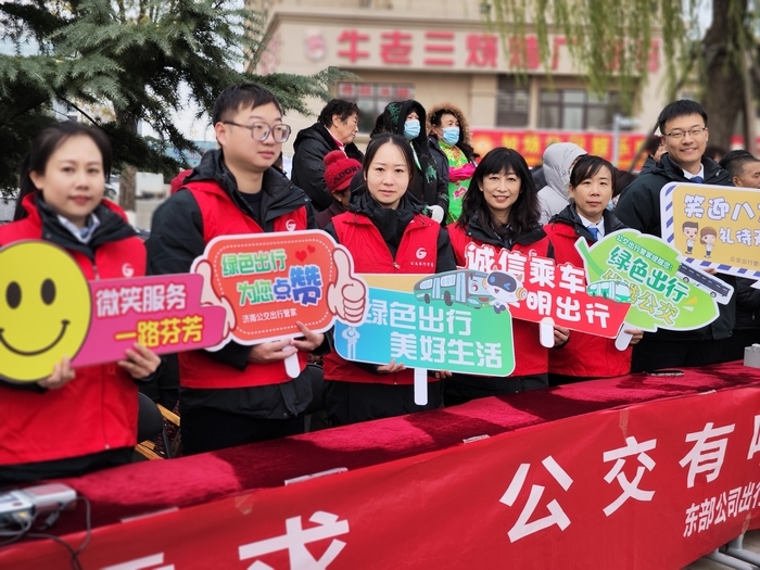 在济南公交职工自编自演的曲艺联唱《公交赞》节目中,开通活动正式拉开帷幕。吉祥物“小象”将乘车体验票发放给参与活动的市民朋友;现场工作人员还向市民乘客展示了公交“红墩墩”主题文创产品;公交出行管家团队为市民赠送公交便民地图等,向市民宣传公交便民举措,得到了市民乘客热烈欢迎。