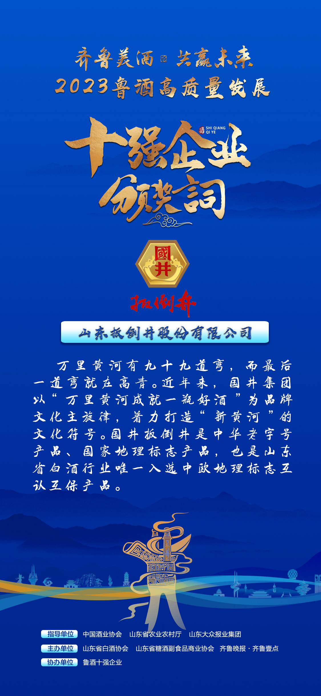 山东扳倒井股份有限公司获评“2023鲁酒高质量发展十强企业”,颁奖词及海报如下: