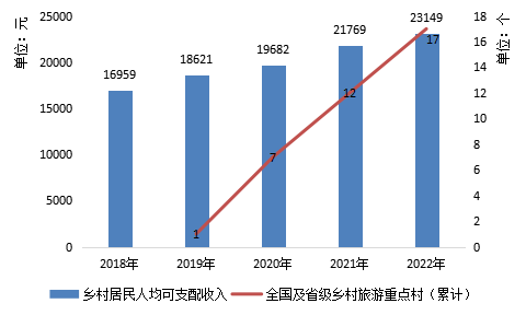 2018-2022年泰安市乡村居民人均可支配收入及省级、国家级乡村旅游重点村数量