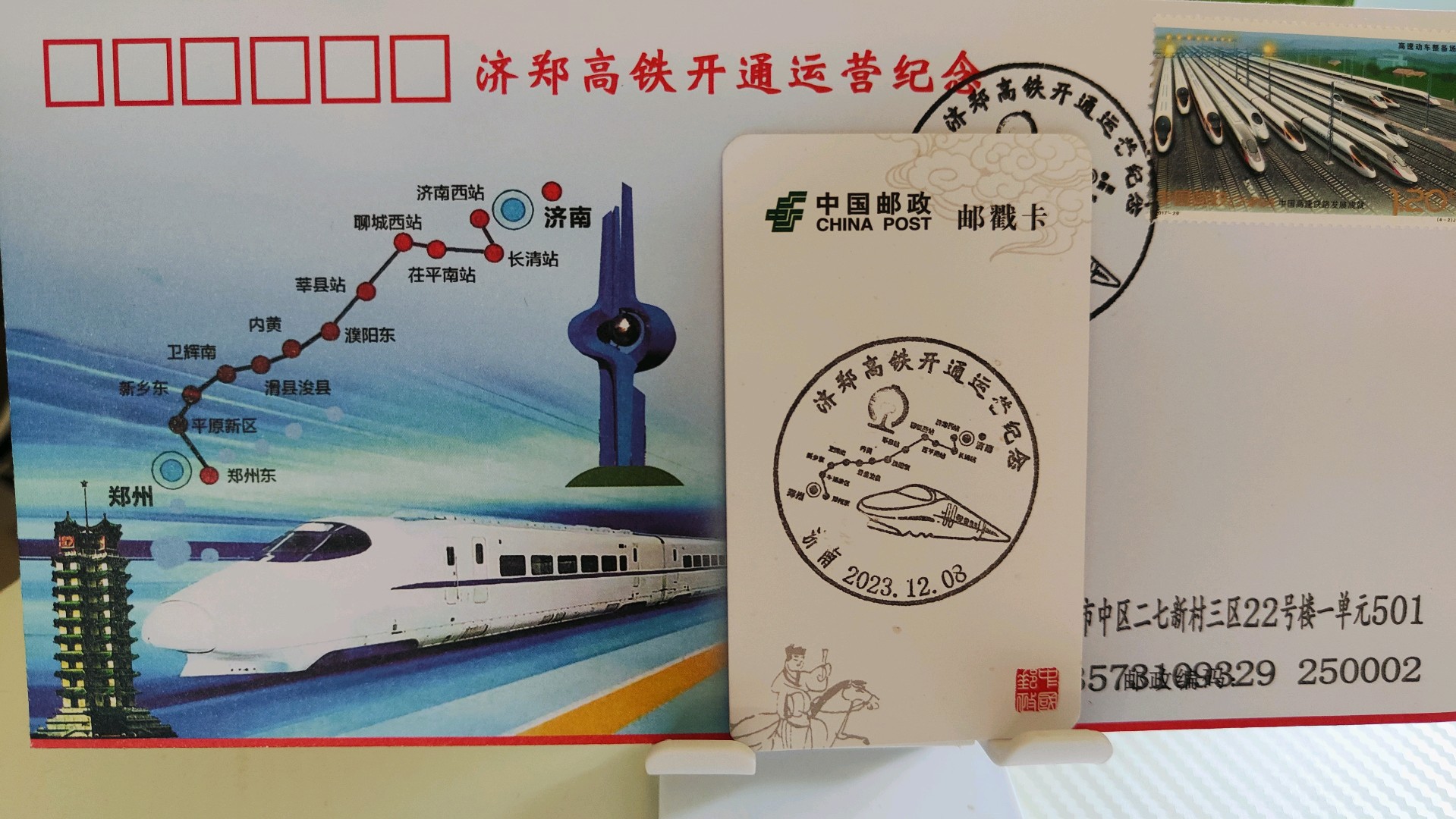 情报员“泉城人家”:济郑高铁通车第一天,真是热闹。跟着直播看的,还有节目表演,第一批乘客真是赚到了,没来得及现场体验,特意去邮局买了首日封作为纪念,等有机会一定去体验一下,祝贺!祝贺呀!