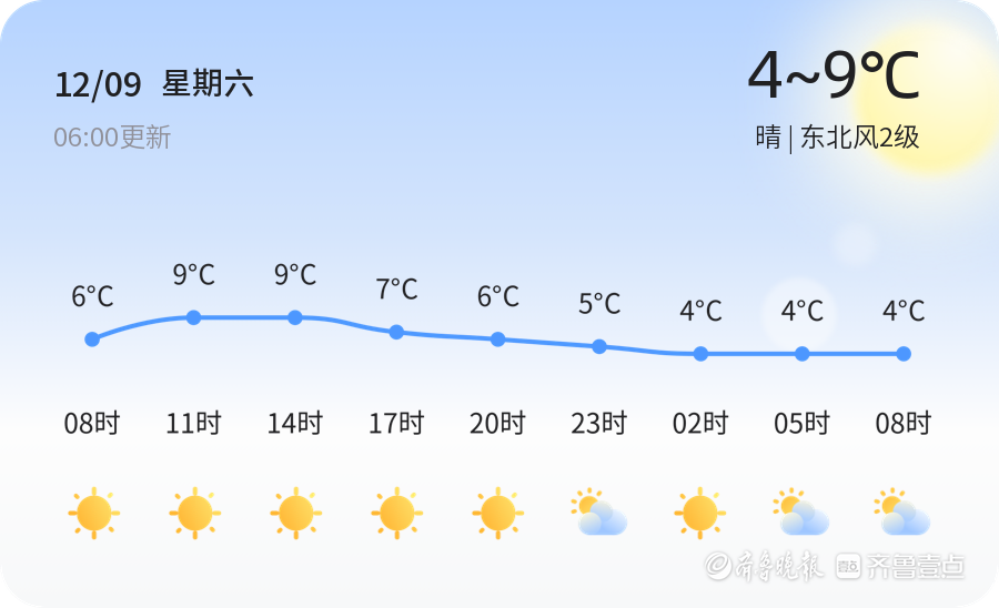 今天是12月9日,星期六,农历十月廿七。晴,东北风2级。