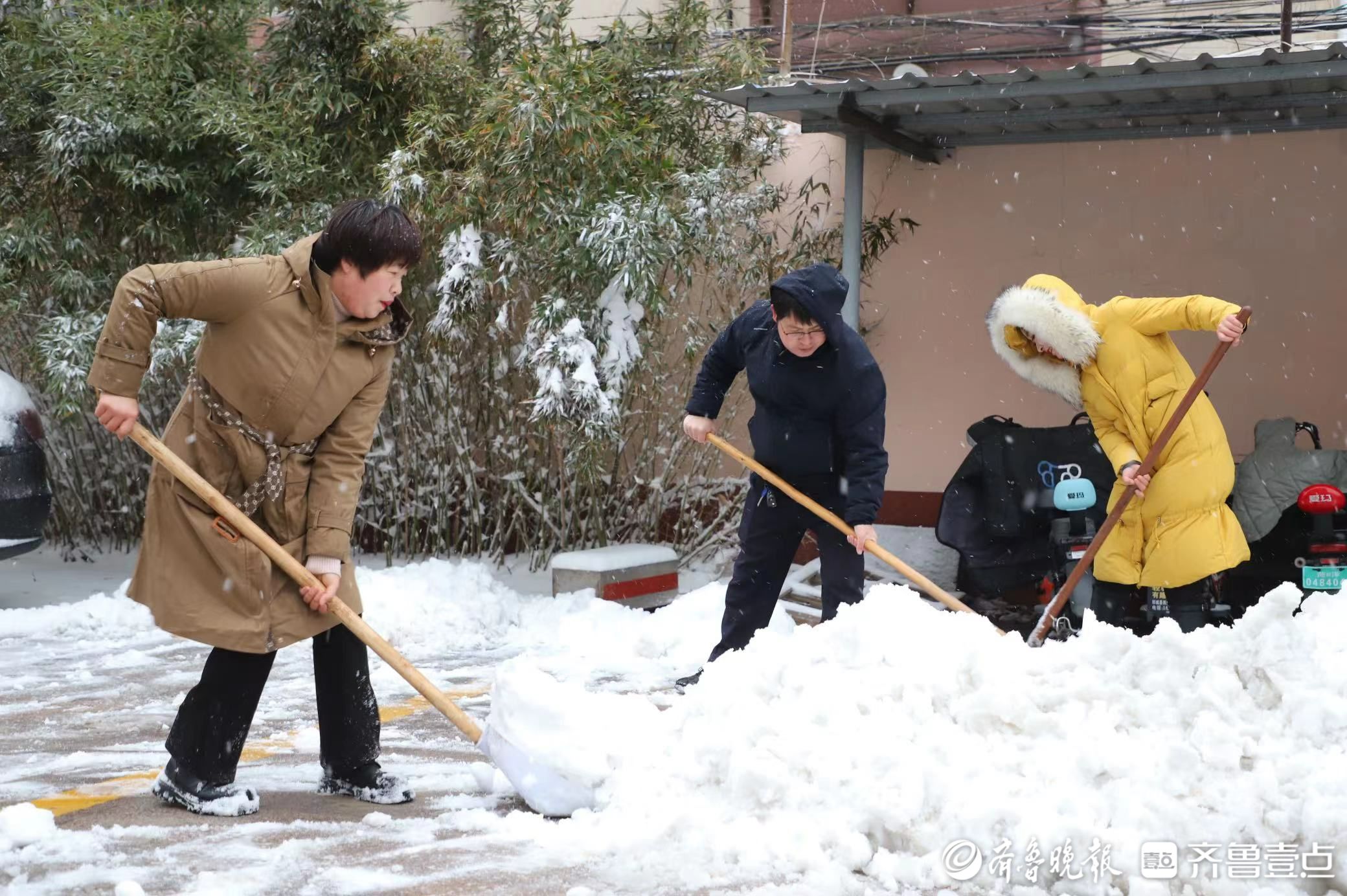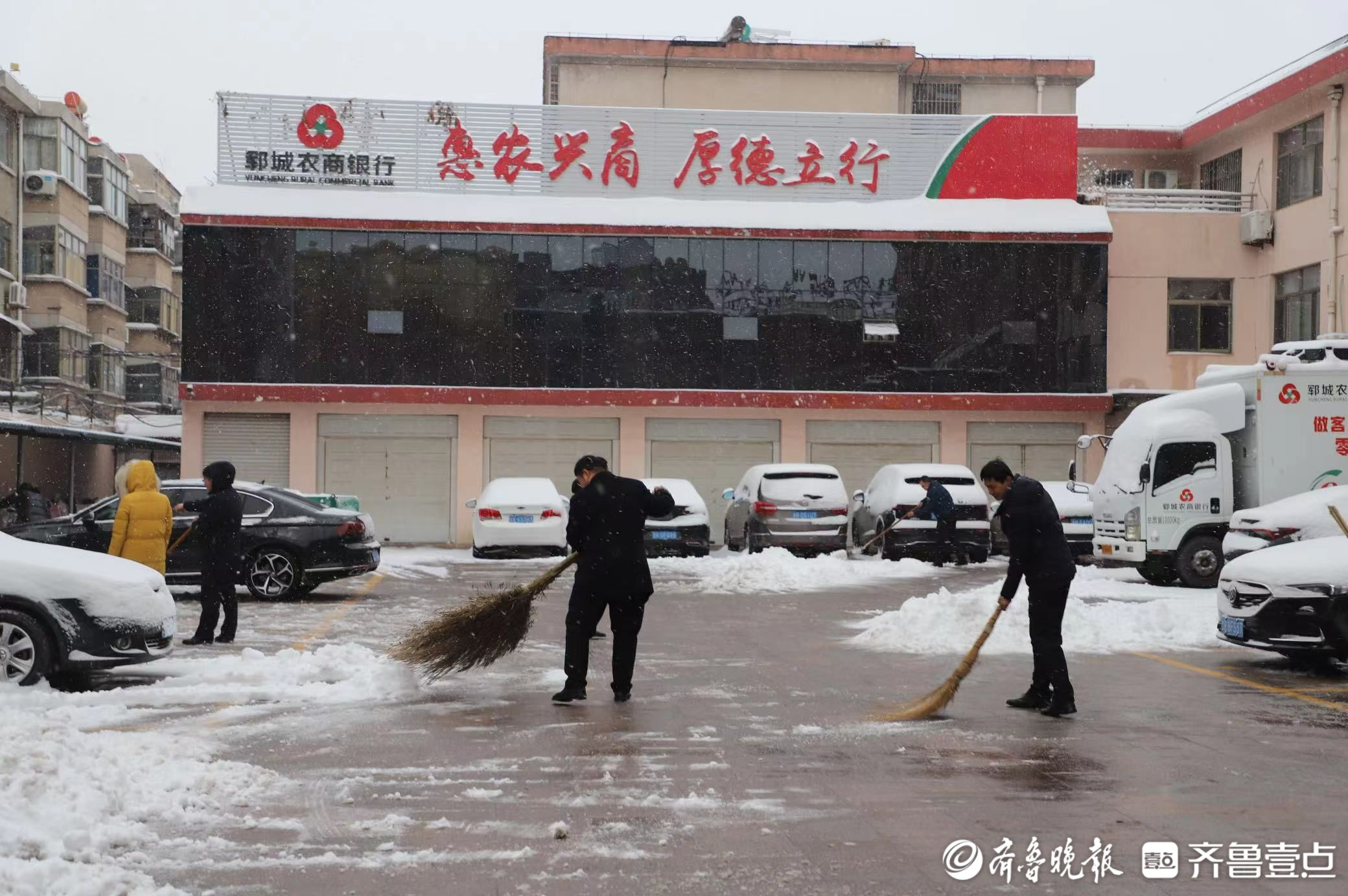 雪水浸透了鞋子,汗水从额头滴落,大家全然不顾,刷刷的扫雪声、合作的推雪声、欢快的笑声,成为总行院内外和谐义务劳动的主题曲;瑞雪映红的脸庞、忙碌的身影,团结协作的默契,成为冬日郓城农商银行一道靓丽风景线。
