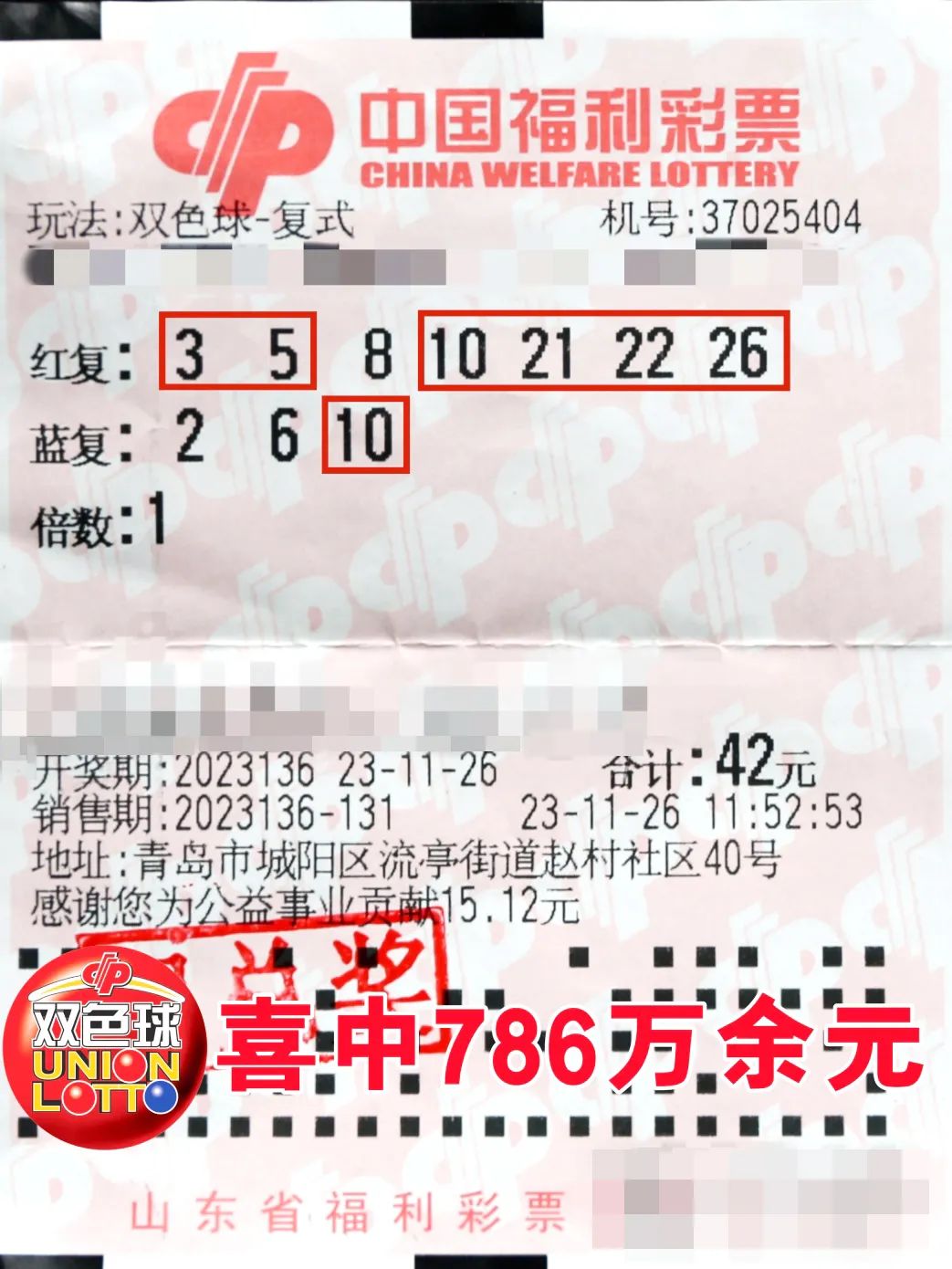彩友积极参与双色球12亿大派奖,抱回786万元大奖!