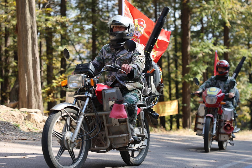 每天早晚,人们都会看到巡山的摩托车,护林员橘红色的工作服、鲜亮的防火宣传旗帜,与满山的绿翠一起,共同化身为秀丽的风景。