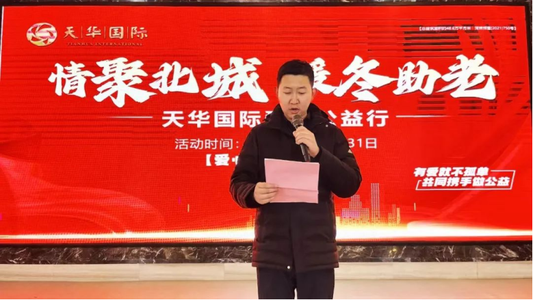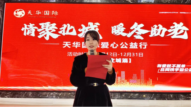 12月12日北城街道党工委副书记赵浩文,天华国际营销负责人刘丹等一行领导,共同见证以“情聚北城 暖冬助老”为主题的爱心公益行启动仪式。