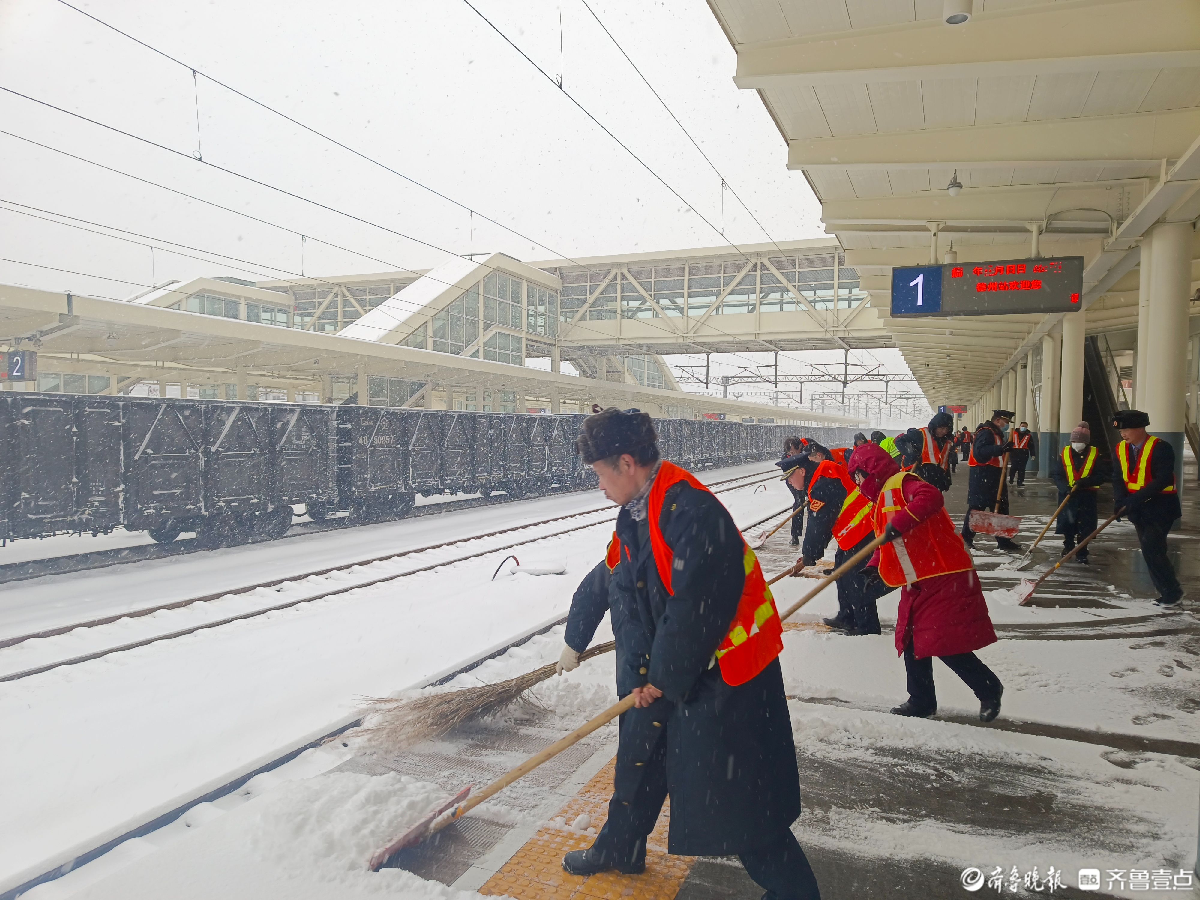 德州火车站扫雪除冰保畅通 大众报业·齐鲁壹点 2023-12-15 1932 齐鲁晚报·齐鲁壹点通讯员 赵双 记者 李梦晴 12月14日,德州普降大雪,德州火车站及时启动旅客组织应急预案,广大干部职工以雪为令积极返站,迅速成立以党团员及骨干为主的35人除雪与旅客组织应急队。工作人员以随下随扫为目标要求,及时清扫旅客进站通道及站台边积雪,同时采取在进站口、出站口、地道台阶等重点区域设置防滑提示牌,铺设防滑草垫,设置专人引导,加强广播宣传提示等措施,确保旅客安全乘降。 责任编辑:李梦晴