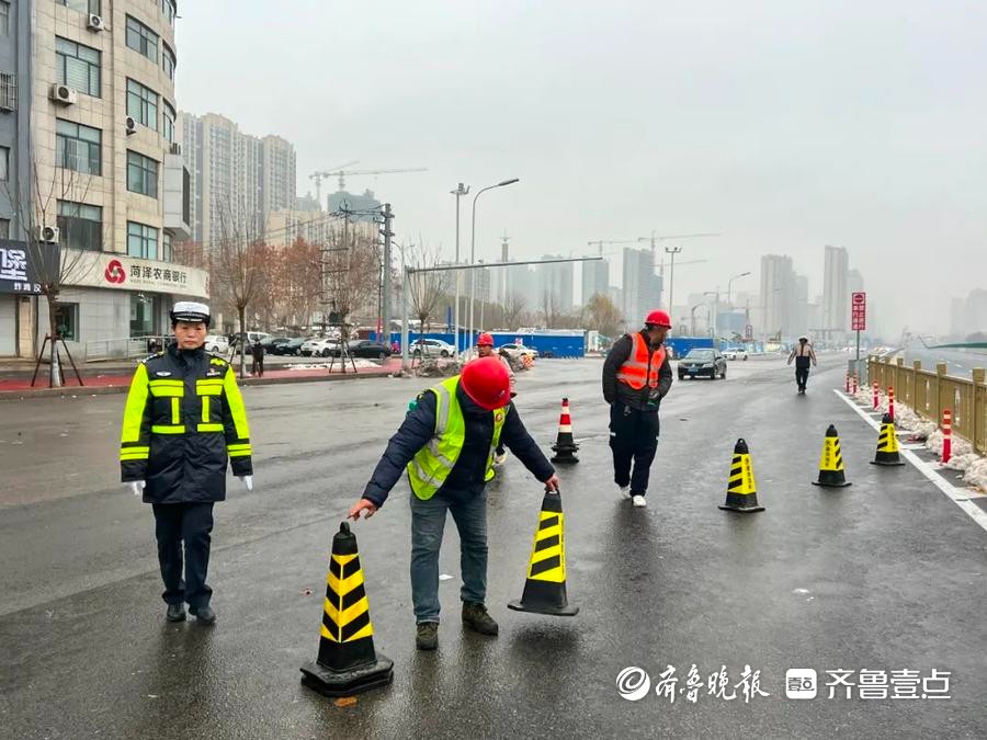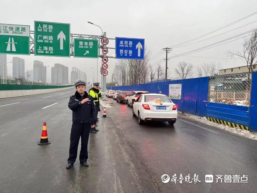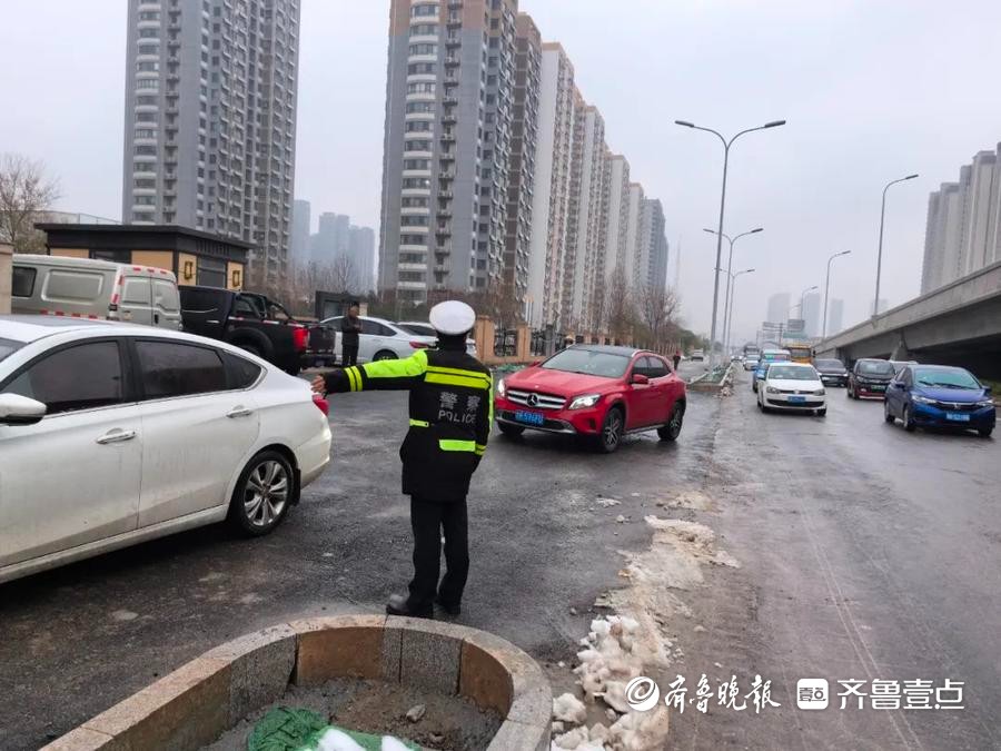 为进一步维护辖区冬季道路交通环境,确保雪天道路安全畅通,提升广大群众的获得感、幸福感、安全感。近日,牡丹区交警提前到岗,持续开展高峰岗执勤工作。