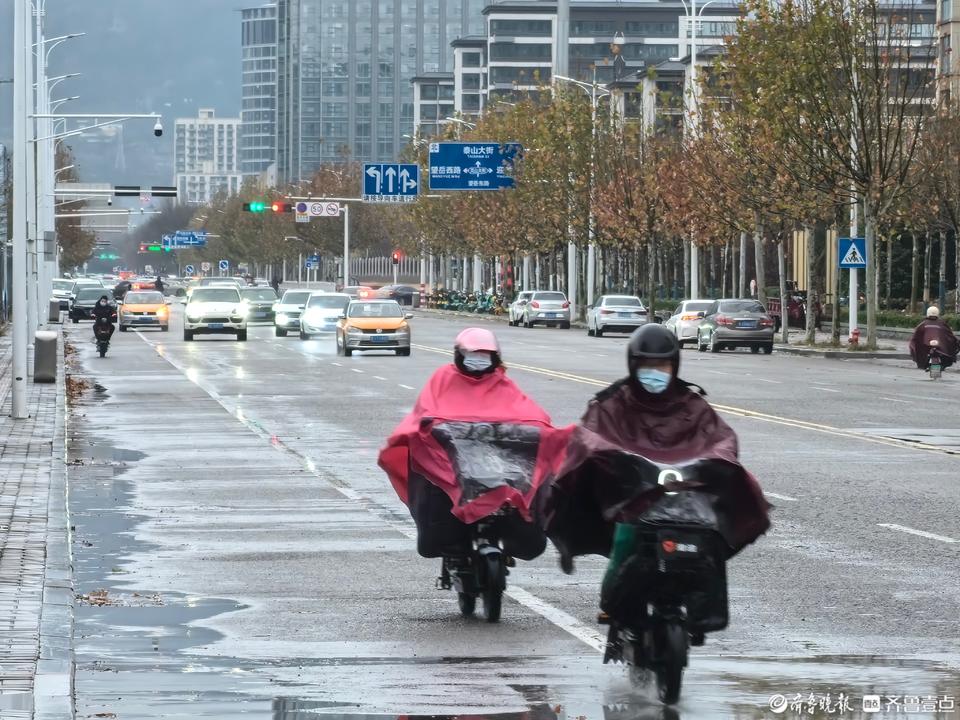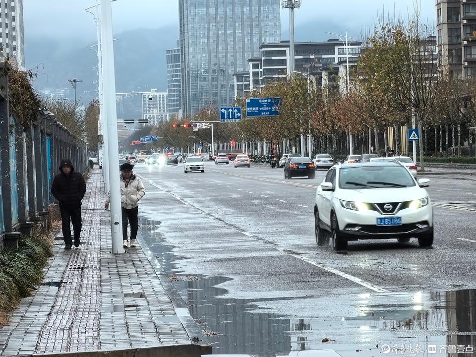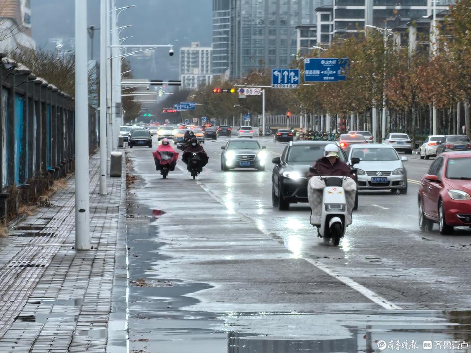 14日上午,泰安暴雪没来,淅沥的冰雨下了大半天。
