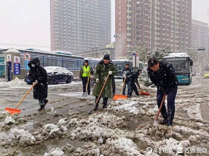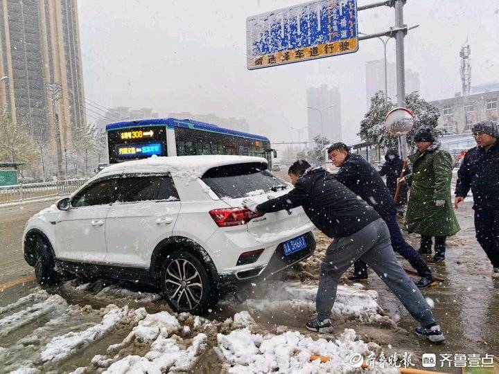 12月14日,大雪降临泉城。鹅毛大雪落下,大街小巷很快被厚厚的积雪覆盖,给市民出行带来不便。见此情况,济南公交中部公司三队的齐鲁志愿者张鑫、左有福、刘学弟等人以雪为令,上街扫雪,同时为雪地打滑的车主热心推车,助力市民安全出行。