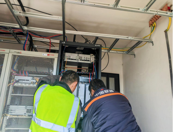 (聊城联通技术人员在机房调测优化5G专网设备)