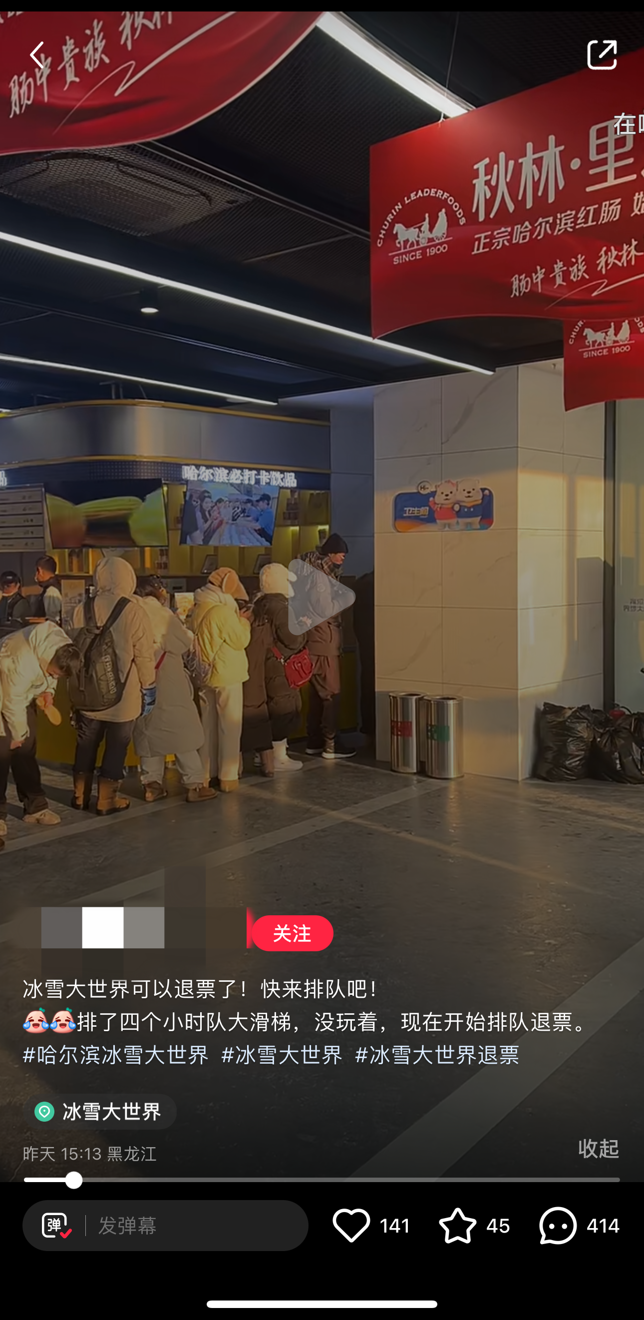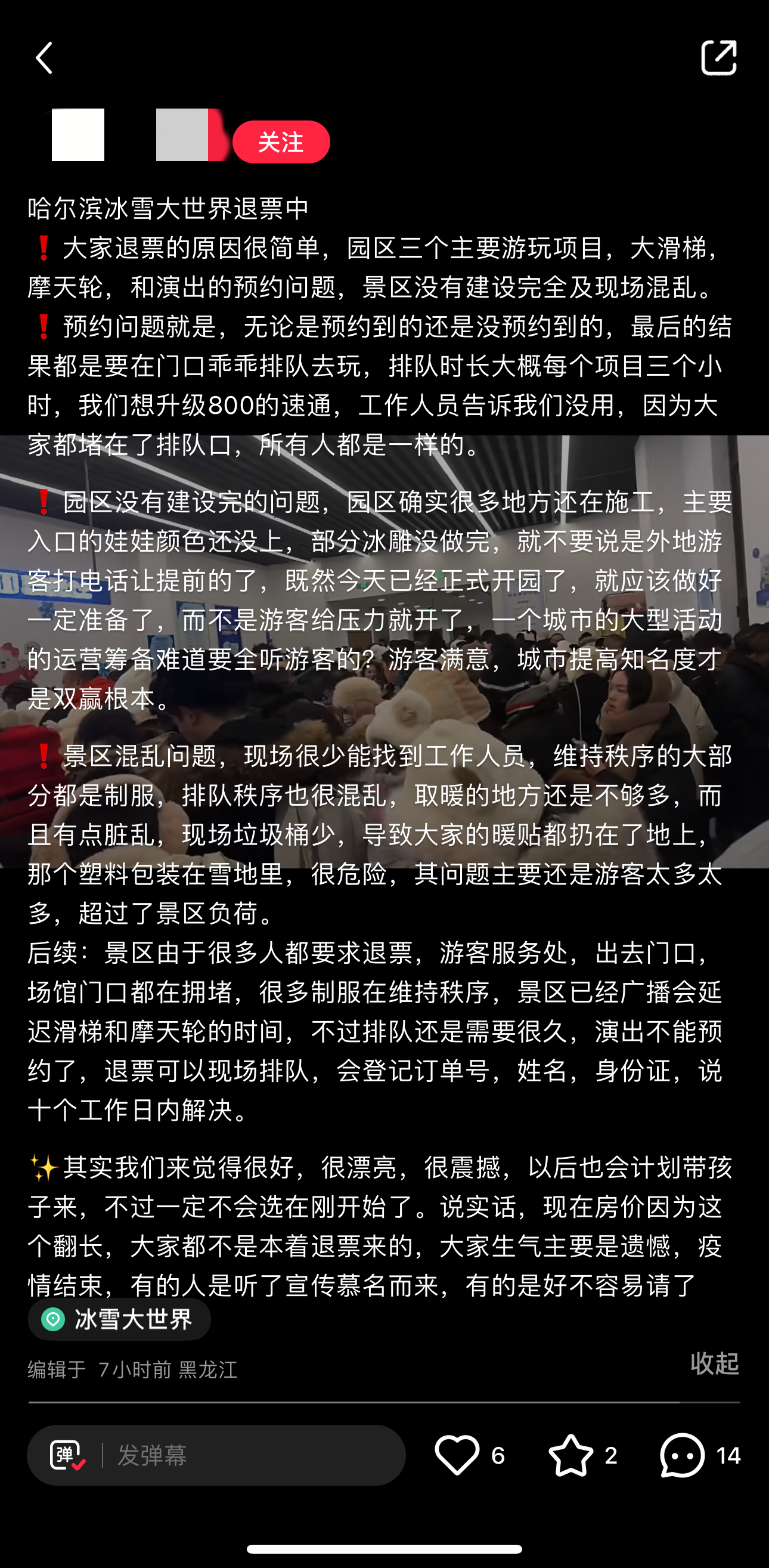 多位网友在社交平台发布的内容中提到,门票包含的主要游玩项目有预约的规则,但最终无论是否预约到项目,都要在零下二十多度的情况下排队数小时游玩。