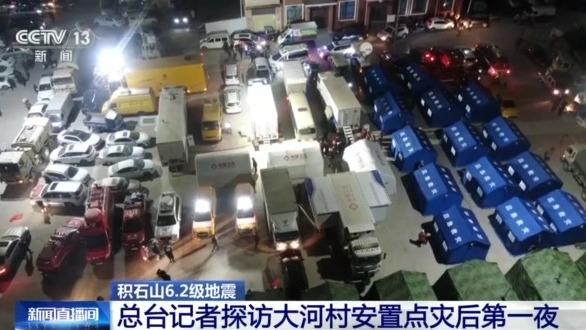 总台记者 王妍:我现在在大河家镇大河村的临时安置点,这里也是这次地震受灾最严重的乡镇。19日凌晨4点,第一批救灾物资就已经运抵了这里,为受灾群众提供临时安置。现在,这里已经设置了102顶帐篷,临时安置900多人。