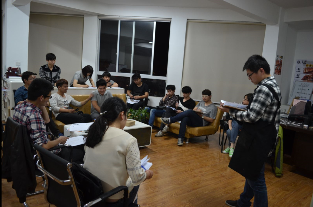 图说:2014年古茗第一次发布会开幕前夕,内部筹备启动会。