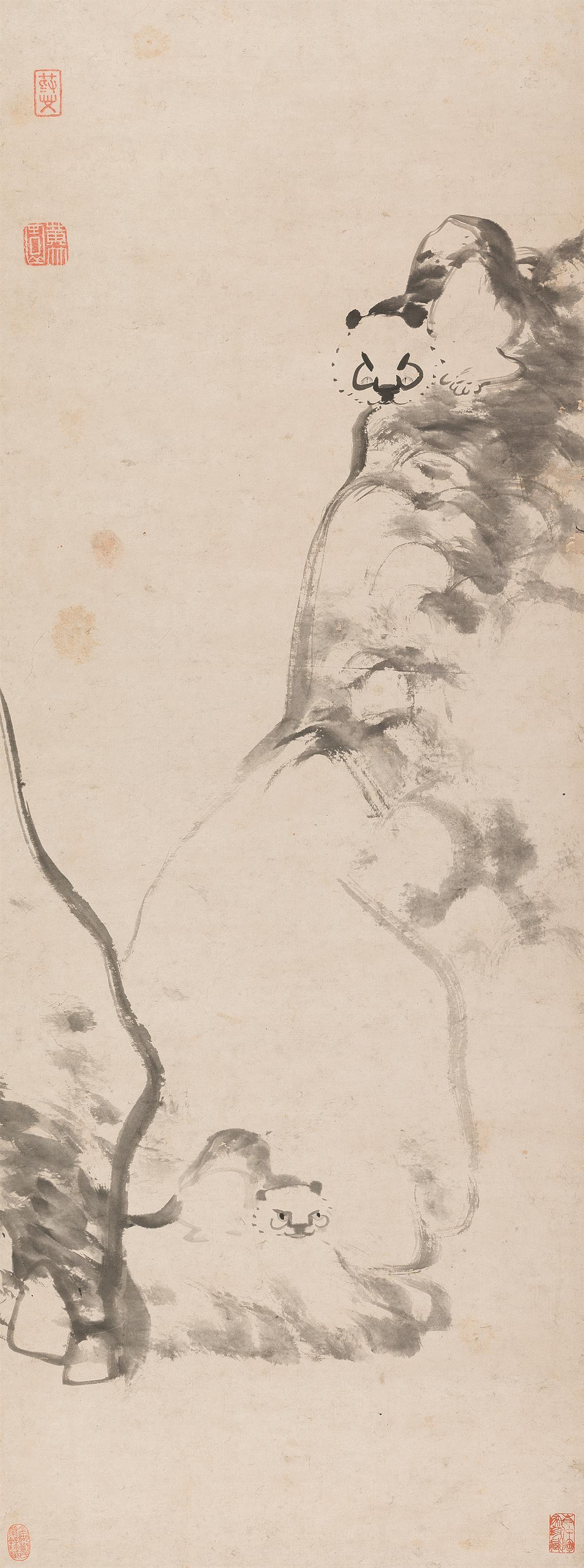 八大山人《猫石图》纸本墨笔,纵104 厘米,横39厘米(武汉博物馆藏品)