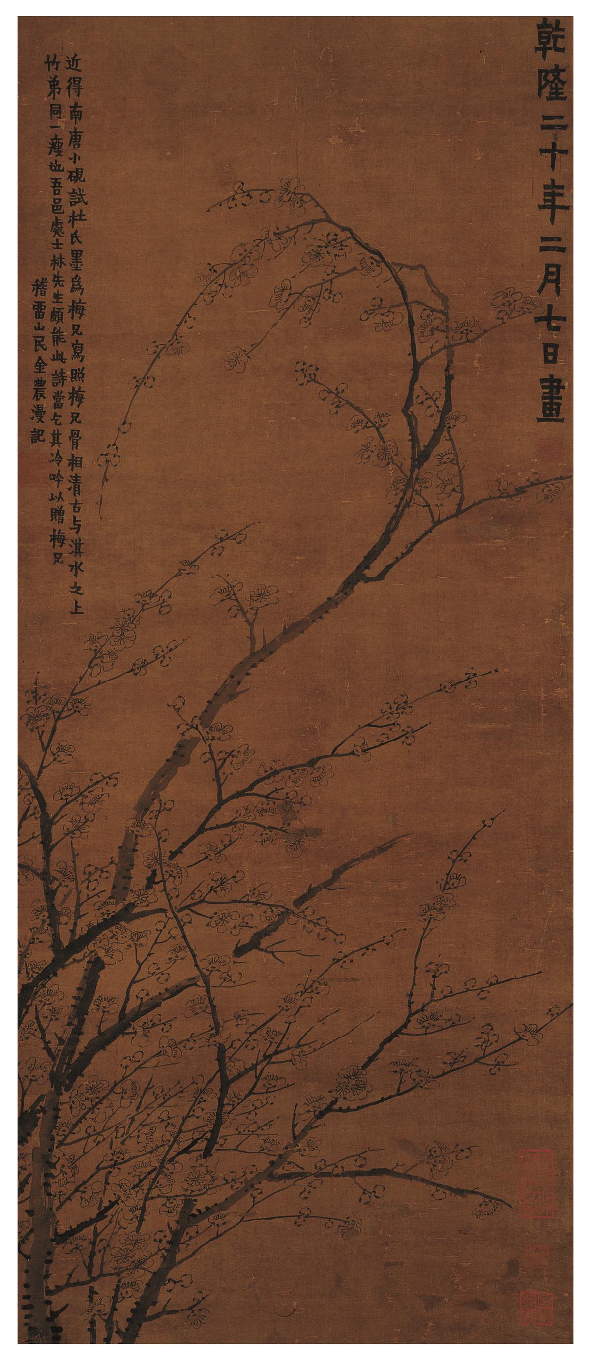 金农 《墨梅图》绢本墨色,纵97厘米,横41.5厘米,清乾隆乙亥年(武汉博物馆藏品)