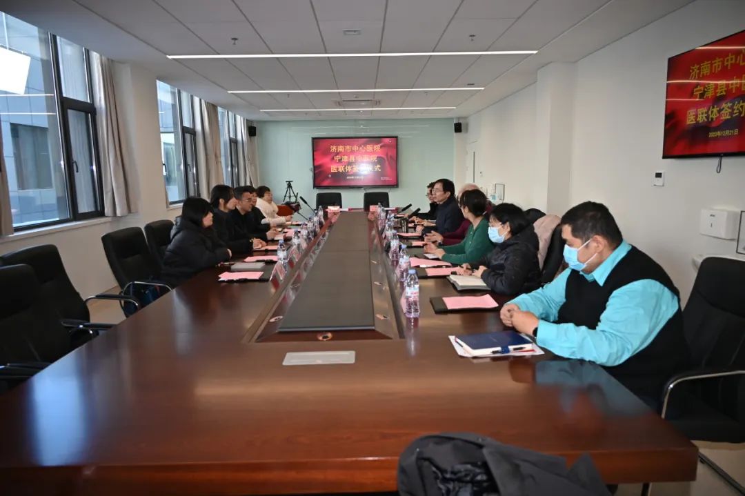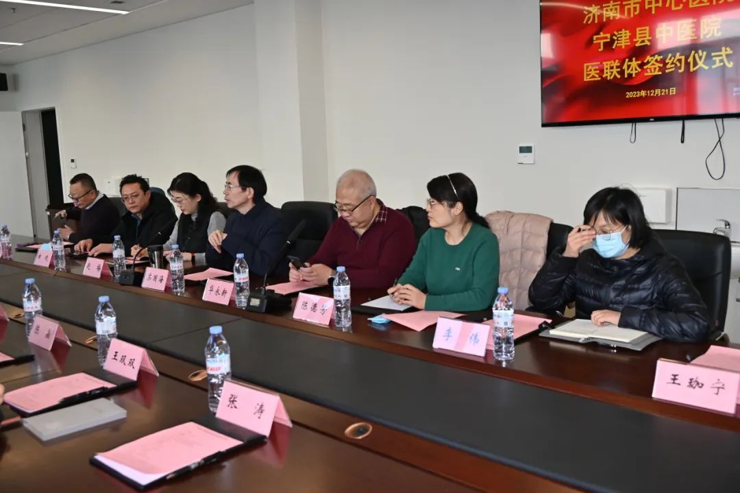 为推动优质医疗资源下沉,加强分级诊疗制度建设,构建优质高效的医疗服务体系,方便辖区群众就医,12月21日,宁津县中医院加盟济南市中心医院医疗联合体单位签约授牌仪式在济南举行,济南市中心医院党委书记苏国海,宁津县中医院党总支书记、院长李志刚参加,济南市中心医院党委委员、副院长华永新主持座谈会议。