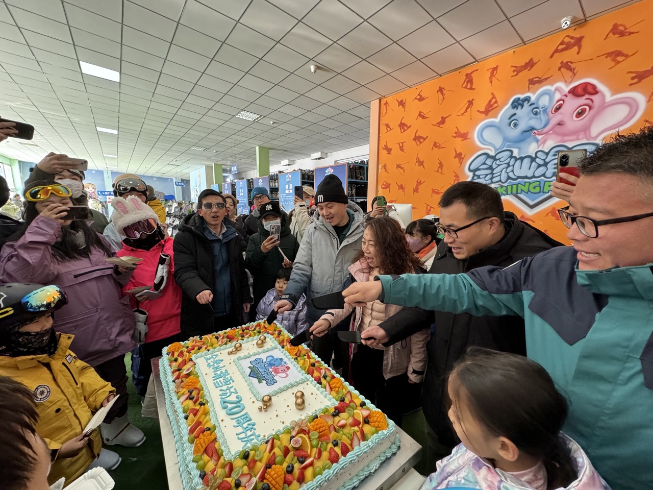 现场,金象山滑雪场举办了“金象山滑雪场20周年庆”,通过免费抽奖、分享特制20周年庆蛋糕,激情滑雪表演等活动将现场气氛推至最高潮。庆典最后,金象山滑雪场总经理王康宣布,首届金象山冰雪摄影大赛正式启动。