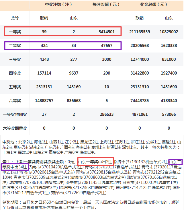 齐鲁福地,好运爆棚!本期山东彩友揽获2注一等奖,大奖诞生在临沂。