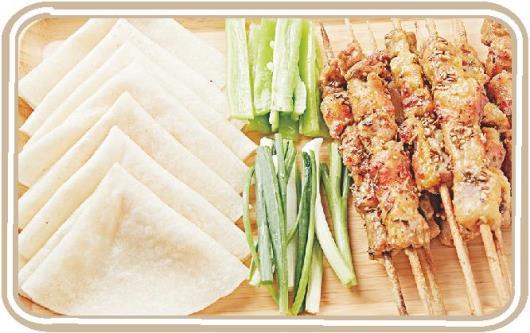 单饼,可卷万物,这让它不光能在家常菜中出彩,还能与其他特色小吃搭上伙,达到“1+1>2”的效果。馒头只能一个一个地揉,煎饼只能一张一张地摊,单饼却可以两张甚至三张一起擀。面团与面团之间抹上油盐,擀一张的工夫就能做出两张饼,烙好之后,再轻轻抖落,两张饼就分离开来,可以说大幅提升了效率。