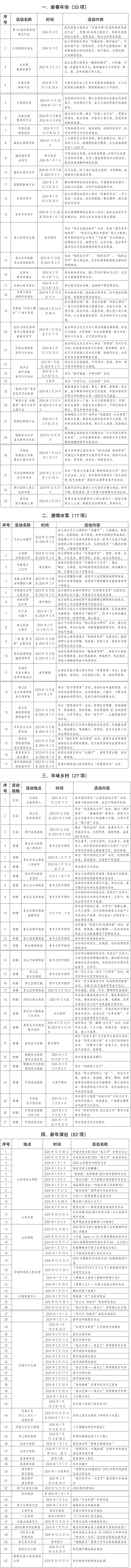 年俗、冰雪、乡村、演出、文博,五大板块畅游冬日泉城 大众报业·齐鲁壹点 2023-12-29 4865 济南市文化和旅游局发动组织各区县文化旅游部门和企业,以“冬游济南 欢乐贺年”为主题推出新春年俗、激情冰雪、年味乡村、新年演出、多彩文博等五大板块共200多项文化旅游活动。 温馨提示:由于临时变动及天气变化等不可控原因,以上活动时间和场地可能出现调整,请以活动涉及到的文旅单位通知为准,如因此对您造成不便敬请谅解。 责任编辑:韩小梅